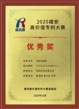 10月22日,推进京津冀知识产权高质量发展暨2025·雄安高价值专利大赛颁奖活动在雄安新区举行。矩网科技携子公司动码印章的创新项目——动码印章机,在京津冀三地182个优质参赛项目中脱颖而出,荣获大赛优秀奖。