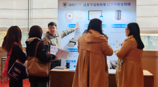 峰会期间,动码印章系列产品吸引力众多参观者的目光,动码印章通过设备演示、案例视频播放、互动体验盖印等多种形式,向参会嘉宾全方位展示动码印章核心技术成果与应用方案。